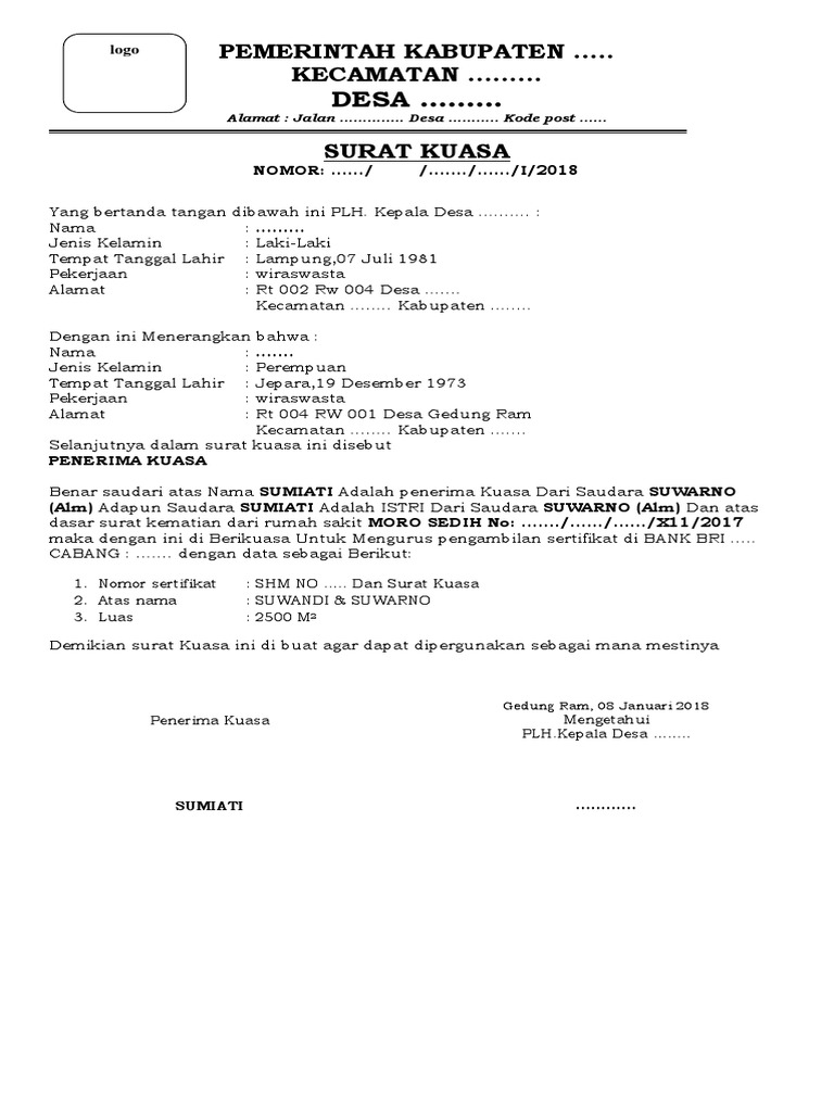 Contoh Surat Kuasa Dari Kepala Desa from image.slidesharecdn.com Kop surat rekomendasi dari keuchik atau kepala desa. Contoh surat pernyataan tidak mampu dari orang tua yang bersangkutan. Surat izin ke kepala desa bersifat resmi, maka dalam penulisannya pun harus menggunakan beberapa hal yang perlu dicantumkan dalam pembuatan surat izin ke kepala desa, antara lain contoh surat balasan penelitian dari kampus untuk pengajuan gelar profesor. Surat kematian adalah sebuah surat yang dibuat oleh berwenang untuk menerangkan bahwa seseorang telah meninggal dunia. Savesave contoh surat keterangan tanah dari kepala desa for later. 2 respons untuk 'contoh surat pengantar dari desa/kelurahan untuk pembuatan skck'. Sehubungan dengan hal tersebut harap dapat mestinya. Contoh surat keterangan penelitian di posyandu dari kepala.